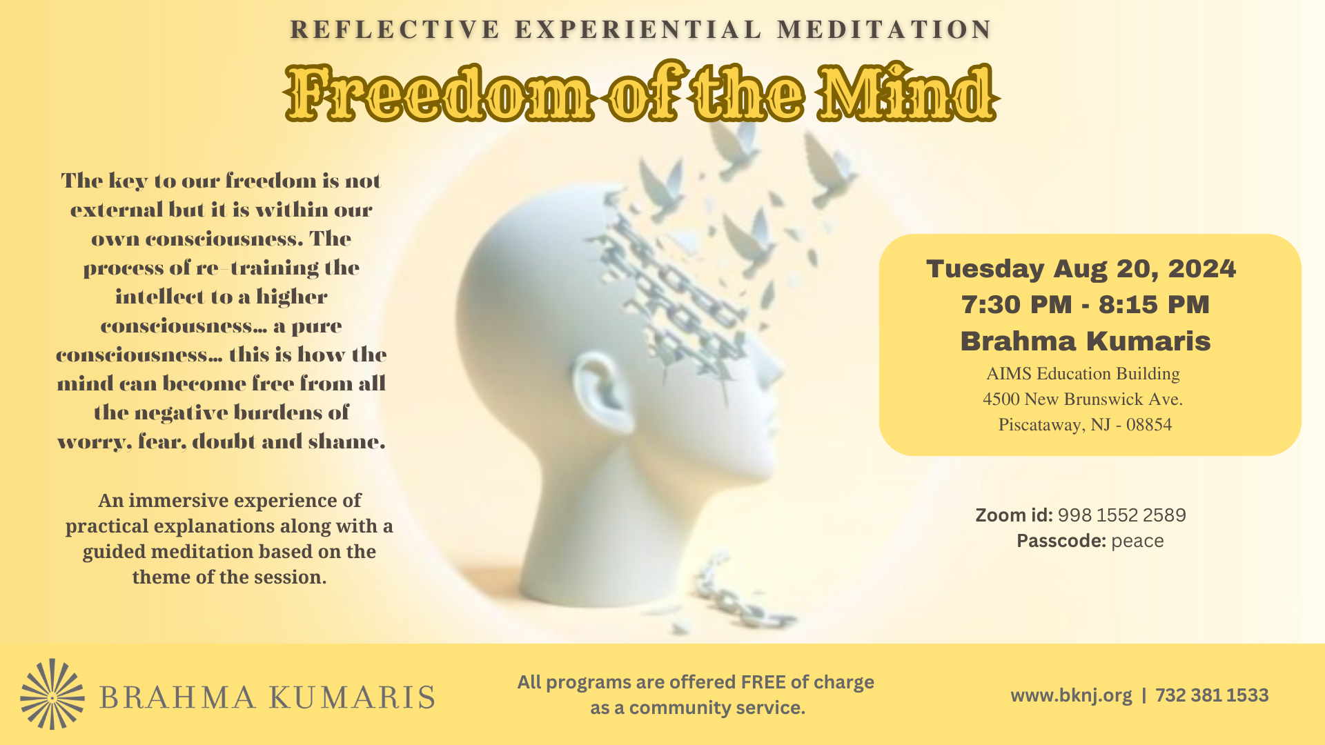 The key to our freedom is not external but it is within our own consciousness. The process of re-training the intellect to a higher consciousness… a pure consciousness… this is how the mind can become free from all the negative burdens of worry, fear, doubt and shame.