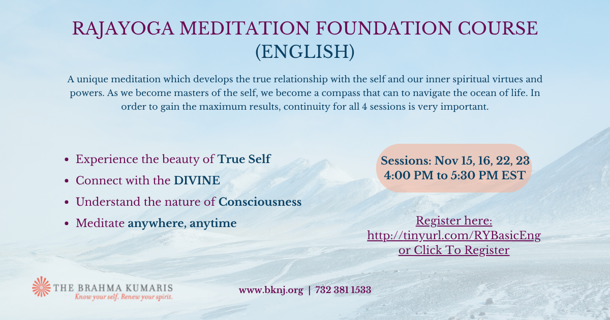A unique meditation which develops the true relationship with the self and our inner spiritual virtues and powers. As we become masters of the self, we become a compass that can to navigate the ocean of life. In order to gain the maximum results, continuity for all 4 sessions is very important.