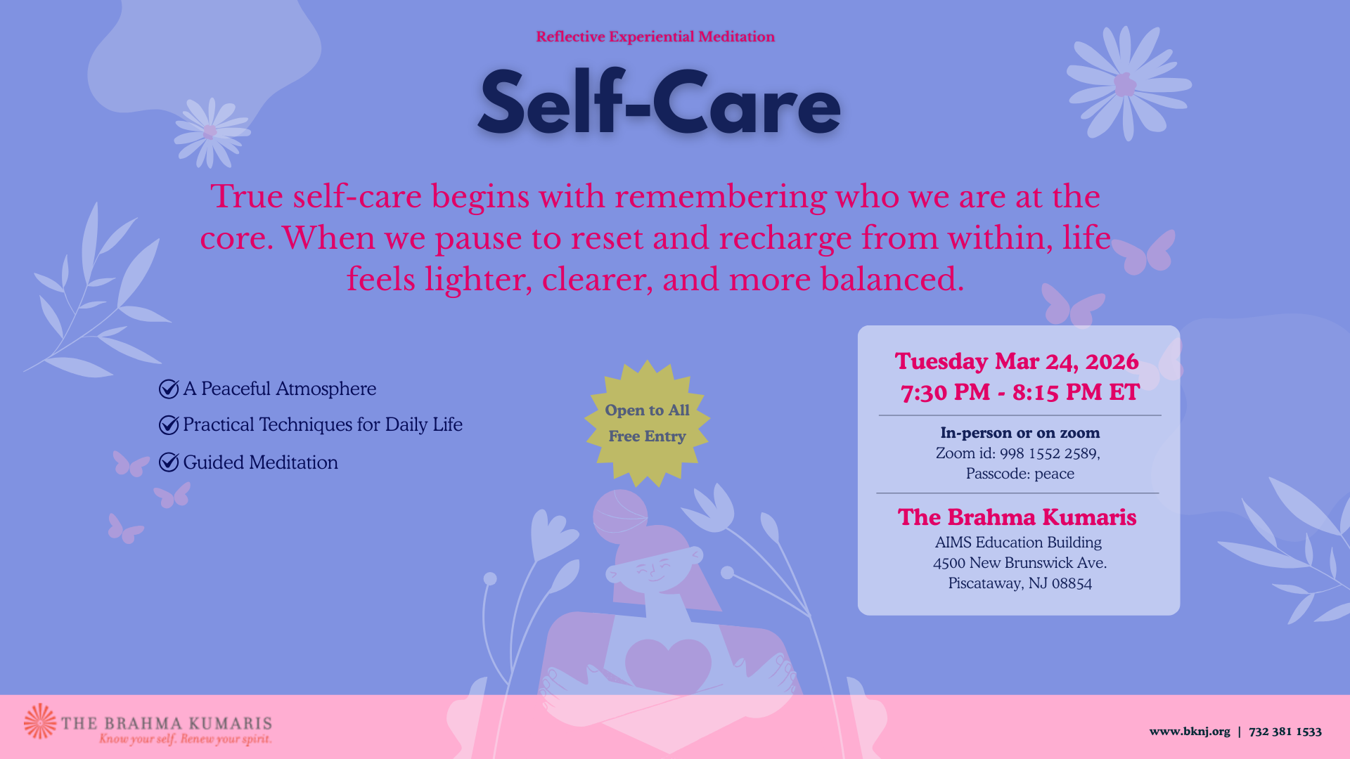 A unique meditation which develops the true relationship with the self and our inner spiritual virtues and powers. As we become masters of the self, we become a compass that can to navigate the ocean of life. In order to gain the maximum results, continuity for all 4 sessions is very important. 4 Sessions: Mar …